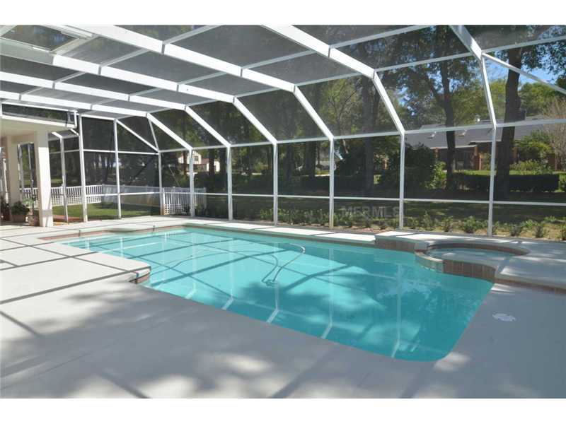 Screened in pool with spa. You can also see the small fenced in dog run area in the back. Maggie will be happy. :)